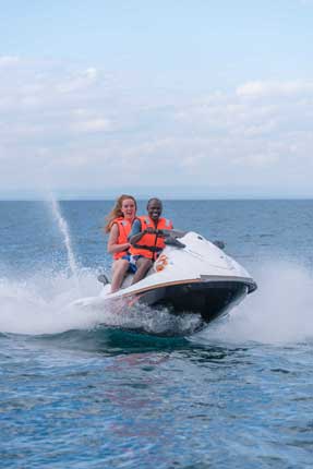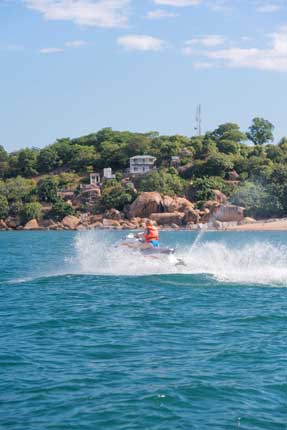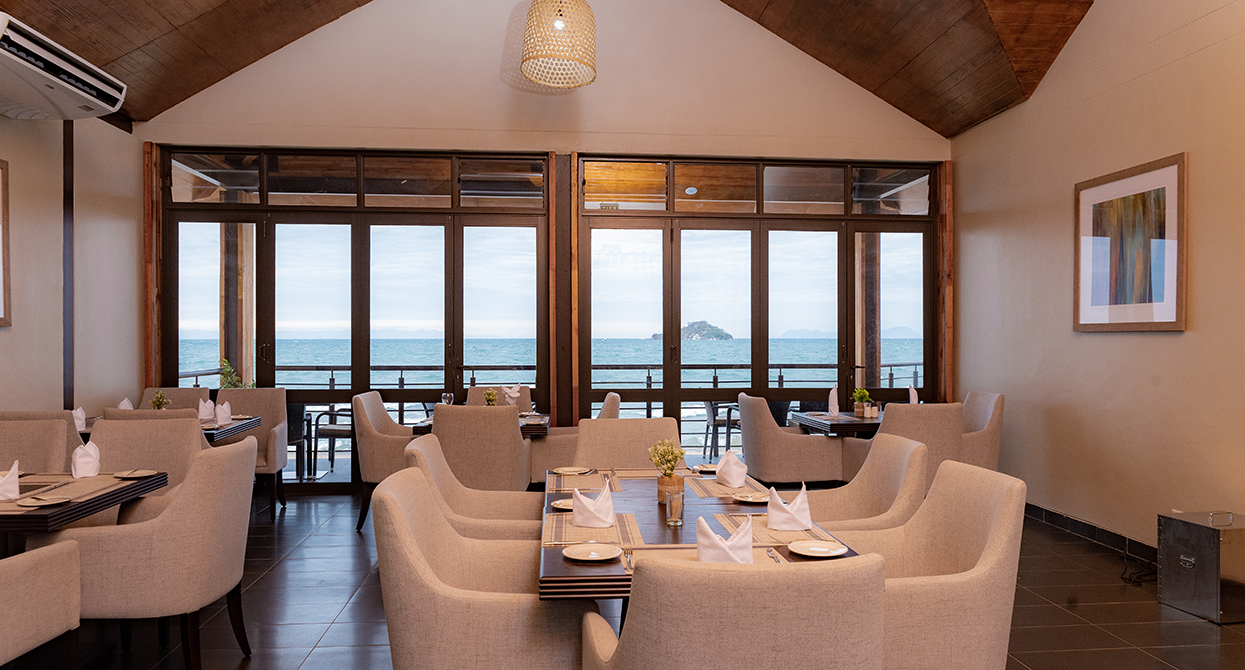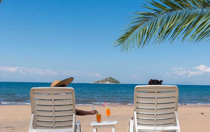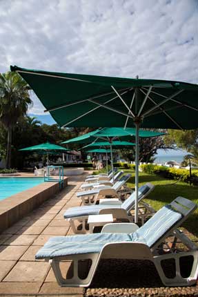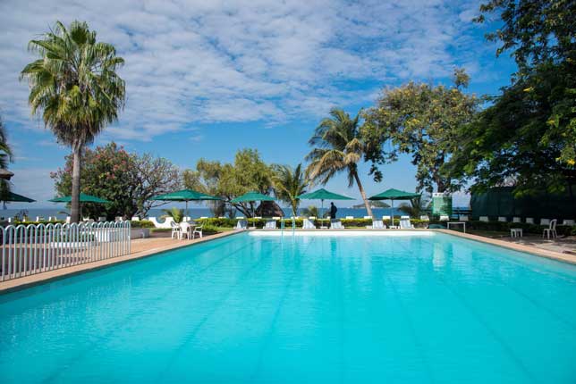 Opposite Bird Island on the Salima shores of Lake Malawi is Sunbird Livingstonia Beach. This exclusive hotel is located on the one kilometer long private beach, adjoining the beach is the hotel’s spectacular campsite. The hotel is a 2 hour drive from Kamuzu International Airport in Lilongwe. The open-air terrace restaurant and the second storey dining room both overlook the beautifully tended gardens and the long stretch of beach.